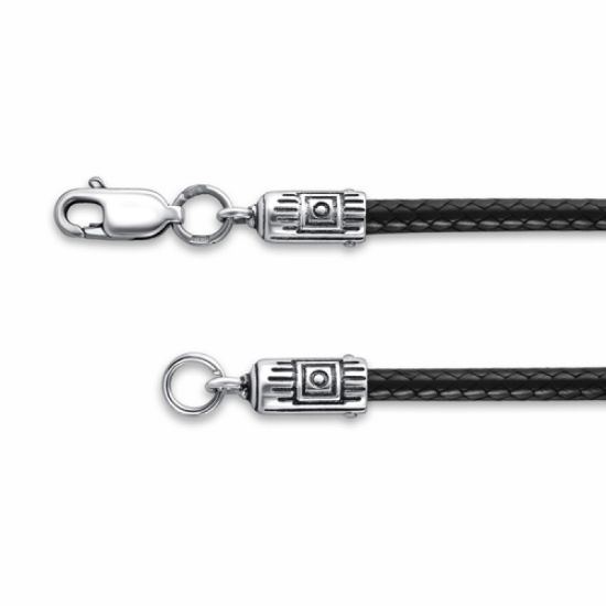 Качественный материал: плетёный кожаный шнур чёрного цвета отличается прочностью и долговечностью. Натуральная кожа приятна на ощупь и со временем приобретает индивидуальный характер.
