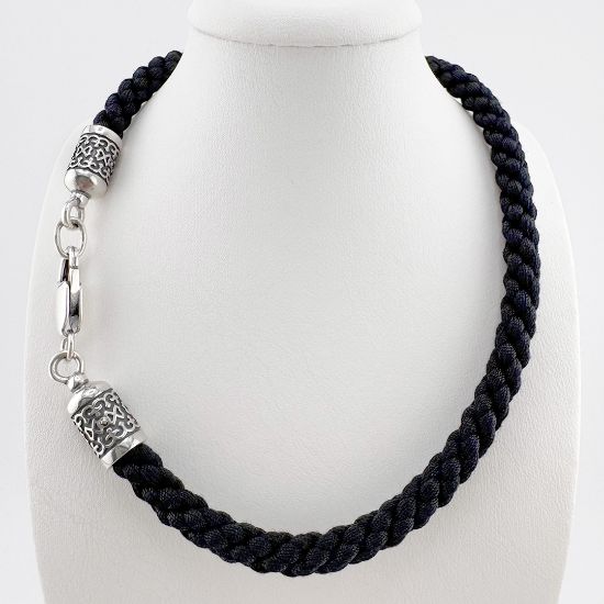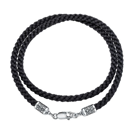 Декоративные элементы: изысканные вставки из серебра 925 пробы с ажурным орнаментом на концах шнура придают изделию особый шарм и подчёркивают его ювелирную ценность.