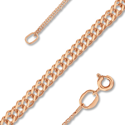 Роскошная цепь из красного золота 585 пробы с изысканным плетением двойной ромб — воплощение элегантности и прочности. Уникальная техника плетения создает эффект объемного узора, где два ряда ромбовидных звеньев переплетаются между собой, образуя роскошный орнамент.