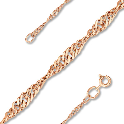 Изысканная цепь плетения Сингапур — элегантное украшение с уникальным спиралевидным дизайном. Визуально скрученные звенья создают завораживающий эффект переливания при движении. Изделие отличается легкостью и изящностью при сохранении высокой прочности. Идеально подходит для повседневной носки и особых случаев.