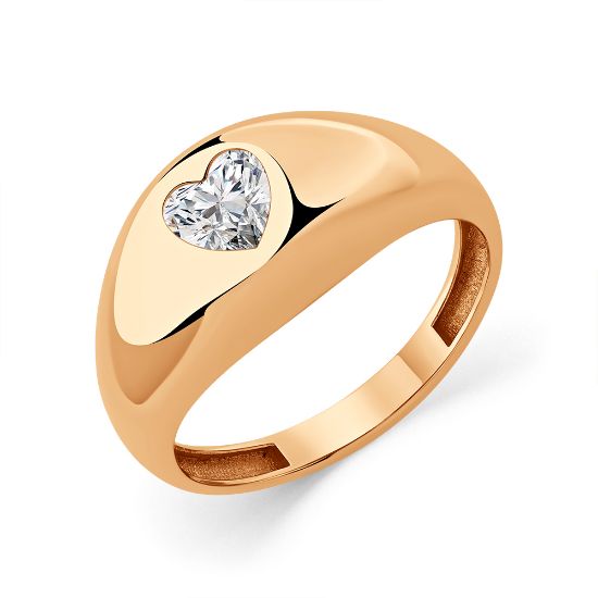Вставка: сверкающий фианит в форме сердца — центральный акцент кольца. Игра света в гранях камня создаёт завораживающий эффект.