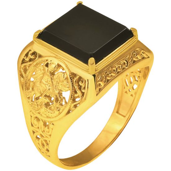 Представляем роскошное мужское кольцо-печатку с чёрным агатом — сочетание благородного золота и уникального природного камня.