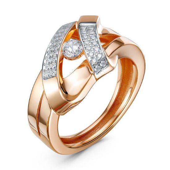 Представляем изысканное кольцо из красного золота 585 пробы, украшенное сверкающими бриллианитами — сочетание благородства металла и блеска драгоценных камней.