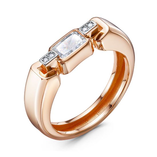 Дополнительные вставки: два небольших блока с фианитами по бокам центрального камня. Создают гармоничный акцент и усиливают общий эффект роскоши.