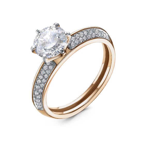 Покорите сердца блеском элегантности с этим изысканным кольцом из красного золота! Украшение сочетает в себе классику и роскошь: центральный крупный бриллианит, закреплённый в надёжной оправе, дополнен россыпью мелких фианитов, инкрустированных вдоль ободка.