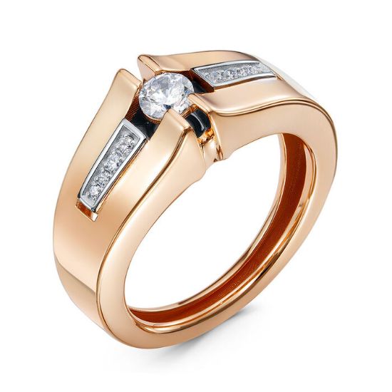 Ювелирное кольцо из красного золота 585 пробы со вставками из оникса, бриллианита и россыпью фианитов Выберите серьги с артикулом 121118 в нашем магазине
