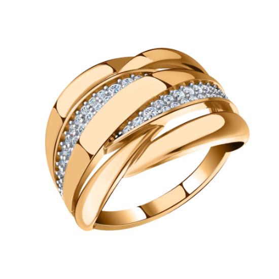 Это кольцо из красного золота 585 пробы с фианитами обладает следующими особенностями:
