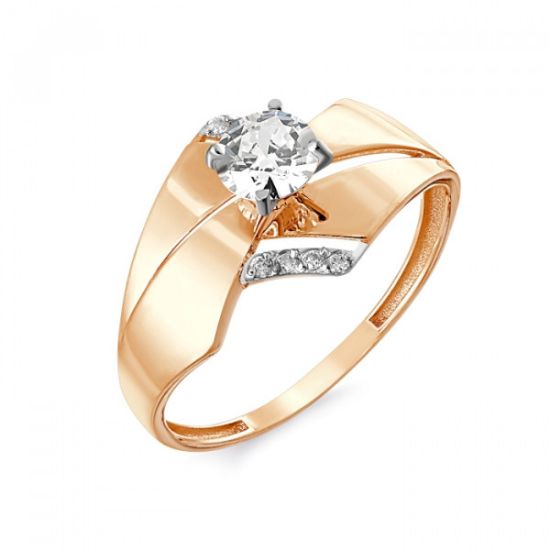 Элегантное кольцо из красного золота 585 пробы с центральным фианитом и дополнительными камнями по бокам. Дизайн кольца подчеркивает изысканность и утонченность, делая его идеальным выбором для особых случаев или повседневного ношения.