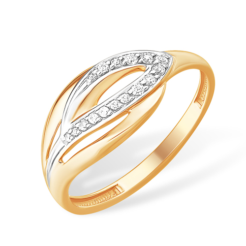 Элегантное кольцо из красного золота 585 пробы с изысканным дизайном. Украшение выполнено в виде двух переплетающихся полос, одна из которых инкрустирована сверкающими фианитами. Этот стильный аксессуар подчеркнет вашу утонченность и станет прекрасным дополнением как к повседневному, так и к праздничному образу.