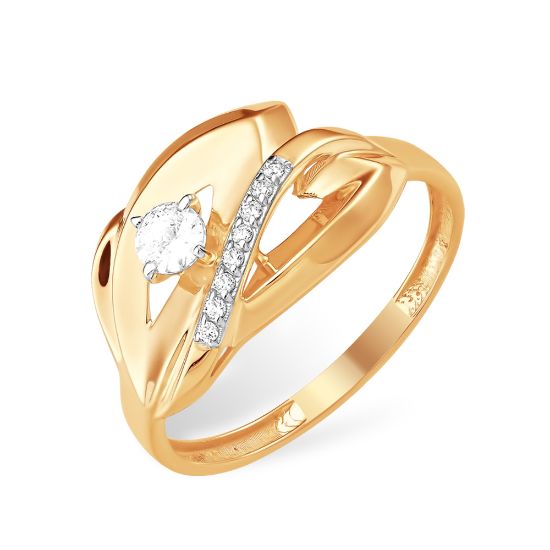 Ювелирное золотое кольцо 585 пробы с россыпью фианитов.
