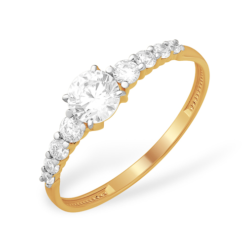 Представляем вашему вниманию элегантное золотое кольцо с фианитами, которое станет украшением любого образа. Это изысканное изделие выполнено из золота 585 пробы, что гарантирует его долговечность и благородный блеск. Центральным элементом кольца является крупный фианит, окружённый двумя рядами мелких фианитов, создающих эффектный и гармоничный вид.