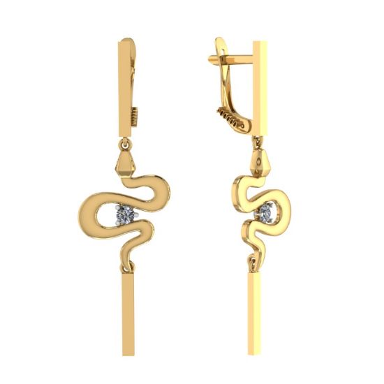 Эти изысканные серьги выполнены из золота 585 пробы и украшены фианитом, который добавляет блеска и элегантности. Дизайн в виде извивающейся змейки символизирует мудрость, обновление и силу, делая украшение не только стильным, но и символичным.