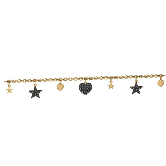 Элегантный золотой браслет с подвесками станет изысканным дополнением к вашему образу. Украшение выполнено из высококачественного золота и украшено подвесками в виде звезд и сердец, которые придают ему особую утонченность.