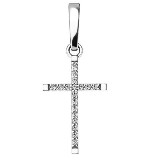 Ищете украшение, которое сочетает в себе утончённость, символизм и безупречный вкус? Представляем вам элегантную подвеску в виде креста, выполненную из белого золота 585 пробы и украшенную сверкающими фианитами.