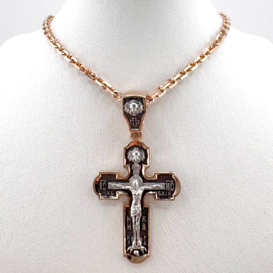 Представляем изысканный православный нательный крест, выполненный в классическом стиле с элементами чернения. Этот крест — не просто украшение, а глубокий символ христианской веры.