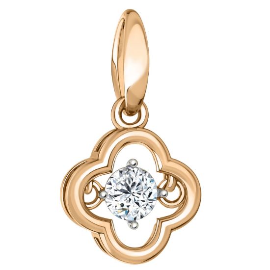 Подвеска из красного золота 585 пробы с фианитом — это изысканное украшение, которое подчеркнет вашу утонченность и стиль. Изделие выполнено в форме изящного цветка, где центральный элемент — крупный фианит, окруженный мелкими камнями, создающими эффект сияния.