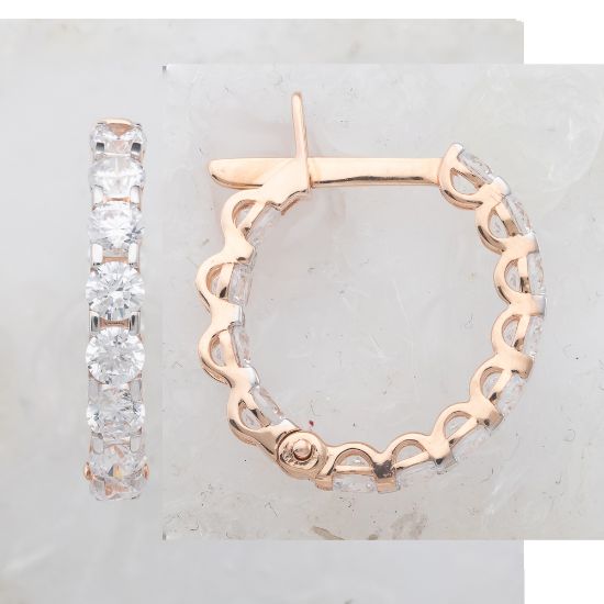 Представляем изысканные серьги-кольца, сочетающие в себе благородство красного золота и завораживающий блеск фианитов. Этот аксессуар станет идеальным дополнением как к повседневному, так и к вечернему образу.