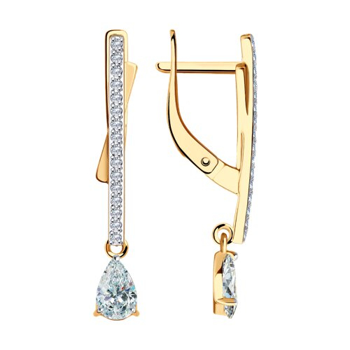 Эти изысканные серьги из красного золота 585 пробы станут настоящим украшением вашего образа. Они выполнены в современном стиле и украшены сверкающими фианитами, которые придают изделию особую элегантность.