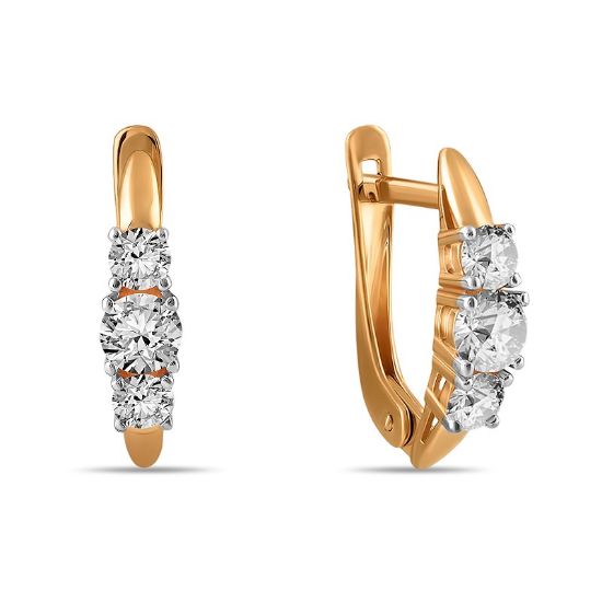 Элегантные серьги из красного золота 585 пробы с фианитами станут изысканным дополнением к вашему образу. Эти серьги выполнены в классическом стиле и украшены тремя фианитами, которые придают им блеск и утонченность.