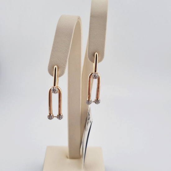 Эти серьги выполнены из высококачественного красного золота 585 пробы, что гарантирует их долговечность и устойчивость к износу. Украшение дополнено сверкающими фианитами, которые придают изделию изысканность и блеск.
