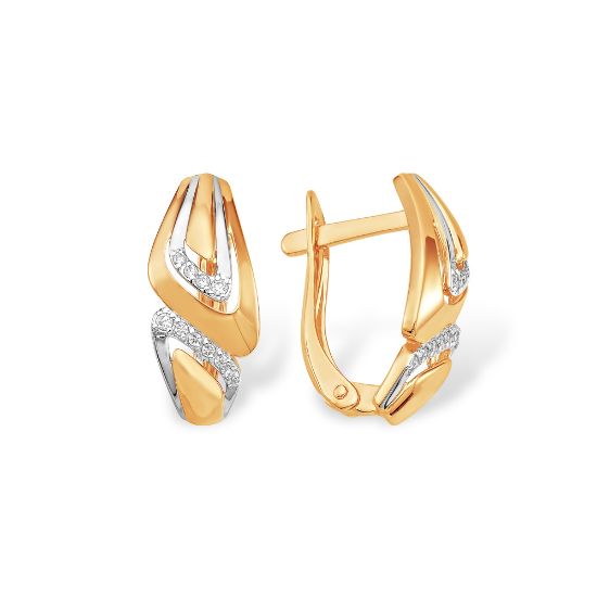 Эти изысканные серьги выполнены из золота 585 пробы и украшены сверкающими фианитами, которые придают им неповторимый блеск. Дизайн сочетает плавные линии и стильные геометрические формы, создавая утончённый и современный образ.