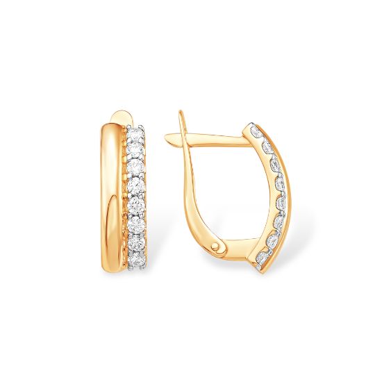 : Украшение инкрустировано фианитами, которые добавляют блеска и роскоши. Центральный крупный фианит в нижней части серёг создаёт акцент, а мелкие фианит вдоль узора подчёркивают изысканность.