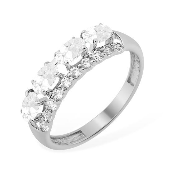 высококачественные фианиты с идеальной огранкой. Крупные камни овальной формы создают выразительный акцент, а россыпь мелких фианитов добавляет кольцу дополнительного блеска.