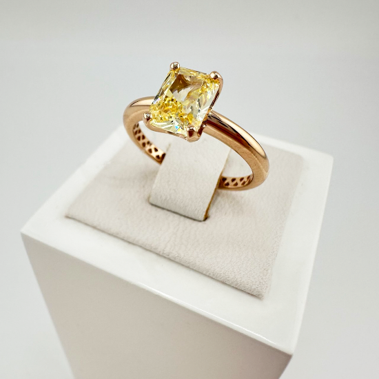 Вставка: бриллианит квадратной огранки с ярким жёлтым оттенком. Бриллианит имитирует блеск и игру света настоящего бриллианта, при этом более доступен по цене.