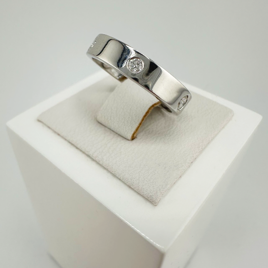 белое золото 585 пробы отличается высокой прочностью и устойчивостью к потускнению. Холодный серебристый оттенок металла подчёркивает чистоту и блеск бриллианта.