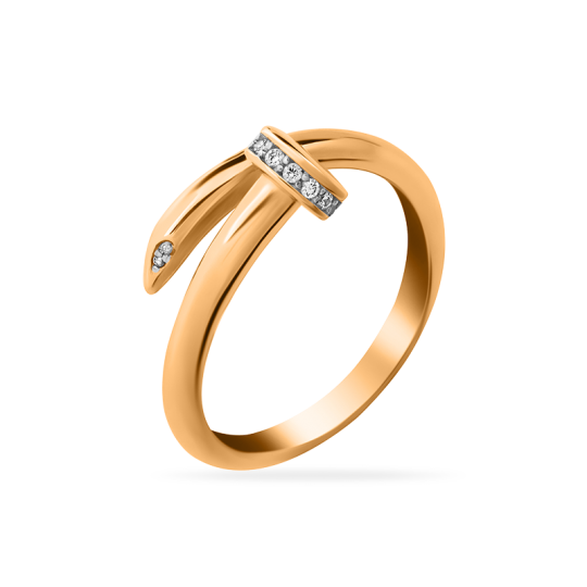 Конструкция: асимметричный элемент с фианитами эффектно пересекает гладкий ободок, создавая динамичный визуальный акцент.