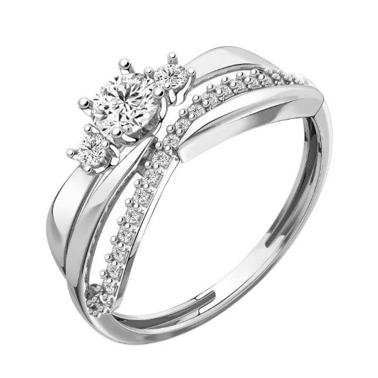 Боковые вставки: три дополнительных фианита, гармонично дополняющих центральный камень и создающих эффектный ансамбль.