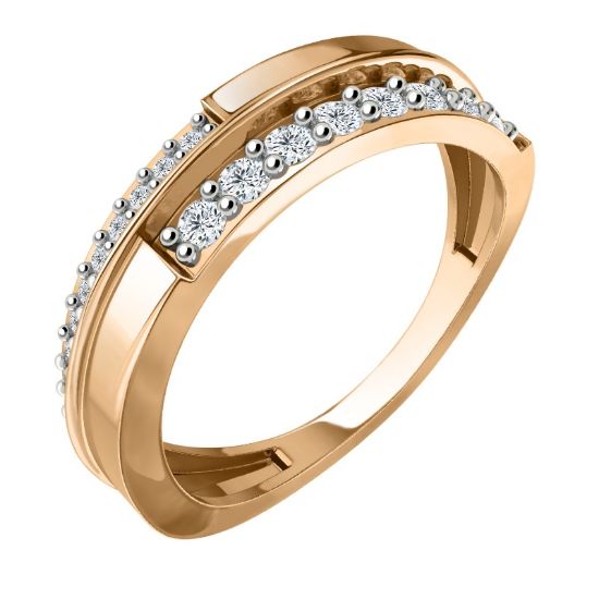 Представляем элегантное кольцо из красного золота 585 пробы, украшенное сверкающими фианитами. Это изделие станет жемчужиной вашей ювелирной коллекции!