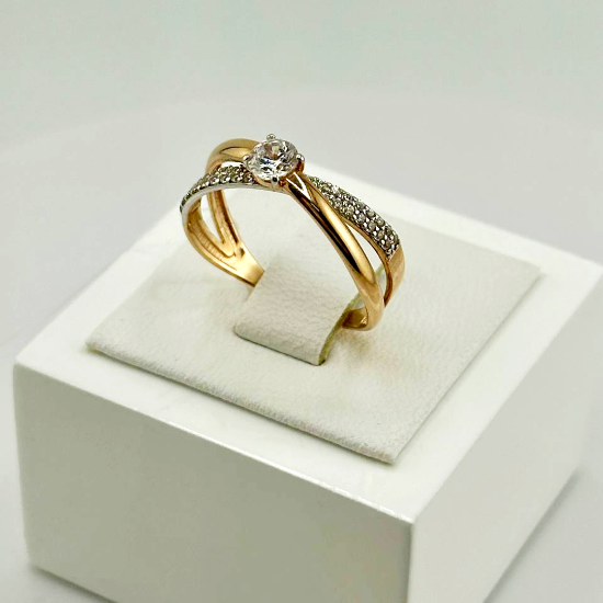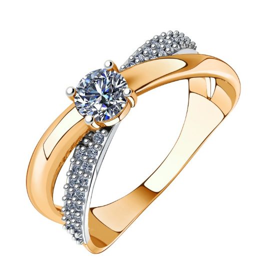 Изысканное кольцо из красного золота 585 пробы, украшенное россыпью фианитов и крупным центральным камнем. Дизайн изделия сочетает в себе элегантность и современность, что делает его универсальным аксессуаром для любого случая.