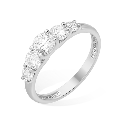 пять крупных камней, расположенных в изящной линии вдоль обода кольца. Плавные линии и утончённая оправа подчёркивают красоту каждого фианита.