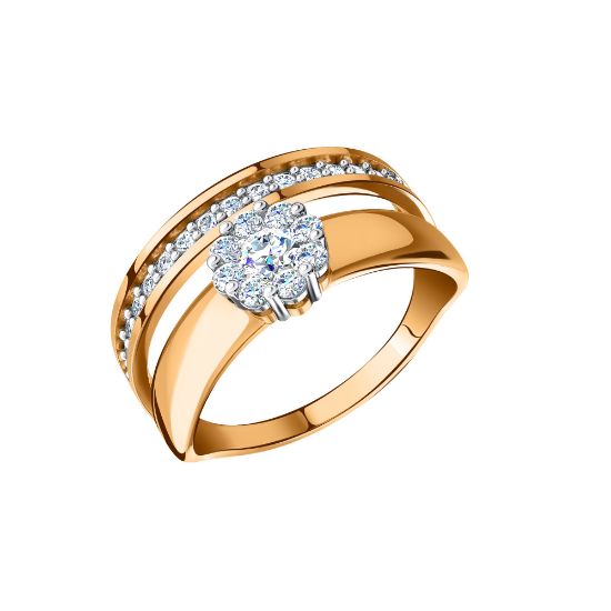 Представляем изысканное кольцо, которое станет жемчужиной вашей ювелирной коллекции. Сочетание благородного золота и сияющих фианитов создаёт по-настоящему завораживающий эффект.
