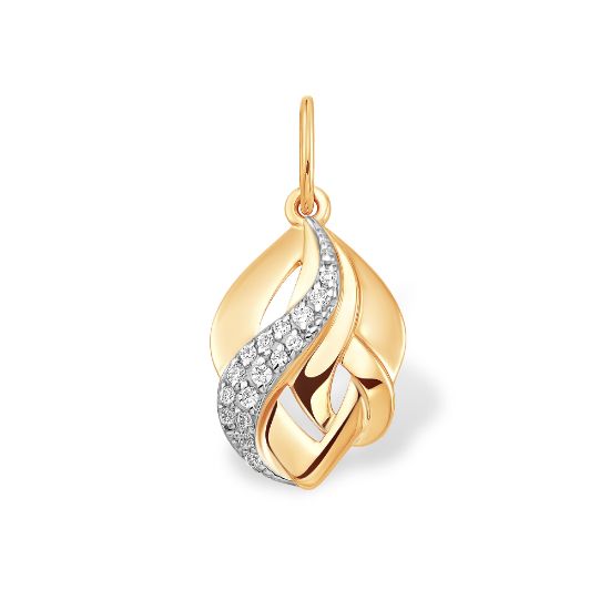 Эта изысканная подвеска выполнена из красного золота 585 пробы, что гарантирует её долговечность и благородный блеск. Дизайн изделия сочетает в себе плавные линии и утончённую геометрию, создавая ощущение гармонии и элегантности. Центральная часть подвески украшена сверкающими фианитами, которые придают украшению особую изысканность и делают его ярким акцентом в любом образе.