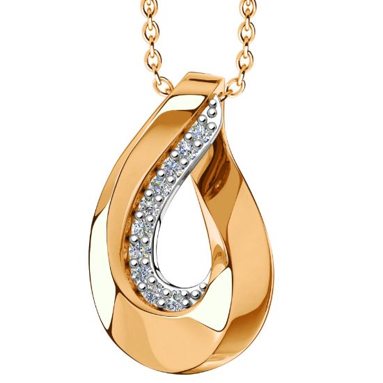 Элегантная подвеска из красного золота 585 пробы с изысканным дизайном. Центральный элемент украшен россыпью бесцветных фианитов, которые создают эффектный блеск и подчеркивают утонченность изделия.