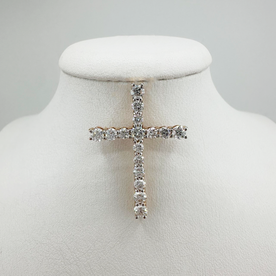 Представляем элегантную подвеску в виде креста, инкрустированную сверкающими бриллиантами.