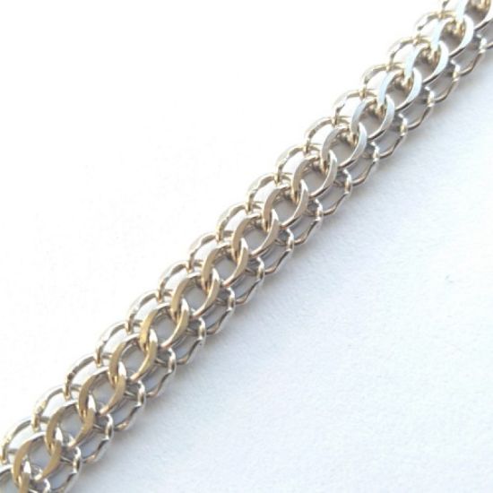 Плетение: сложная техника соединения звеньев создаёт объёмный и выразительный узор. Визуально цепочка выглядит массивно, но при этом сохраняет лёгкость и изящество.