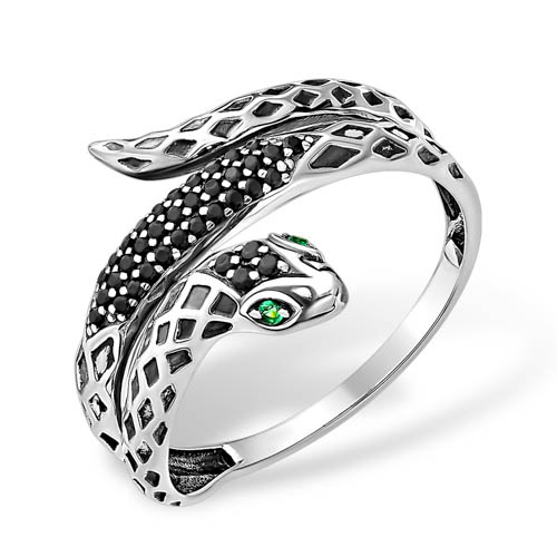чёрные фианиты, инкрустированные вдоль тела змеи, создают завораживающий контраст с серебром.