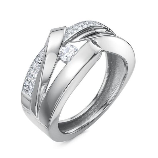 Уникальное кольцо серебряное 925 пробы с переплетающимся дизайном и россыпью фианитов