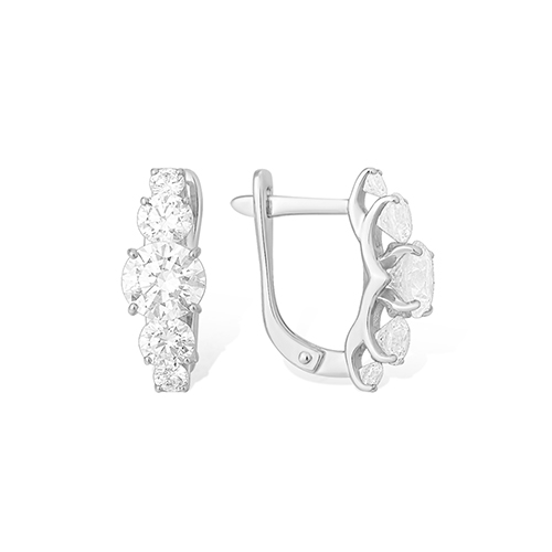 изысканная композиция с несколькими фианитами, расположенными в гармоничном порядке. Лицевая часть серьги напоминает цветочный мотив, что добавляет изделию нежности и шарма.