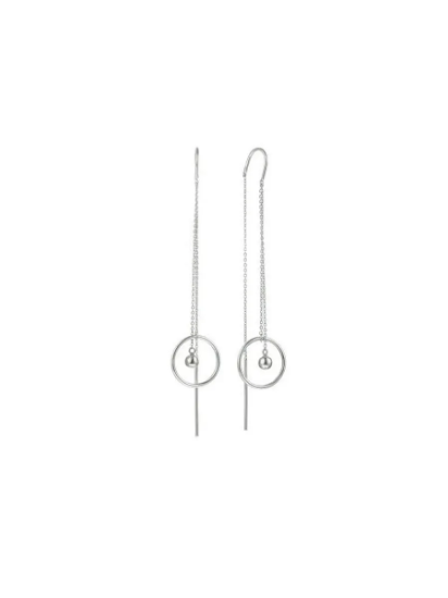 два соединённых кольца с подвеской в виде полированного шарика, дополнены тонкими цепочками и удлинёнными элементами внизу.