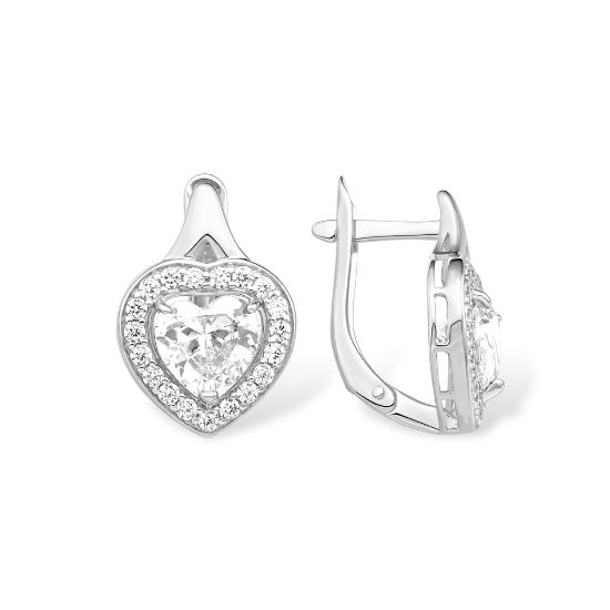 Серьги серебряные 925 пробы в форме сердца с фианитами: воплощение романтики и элегантности