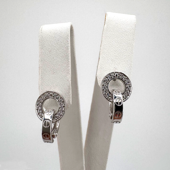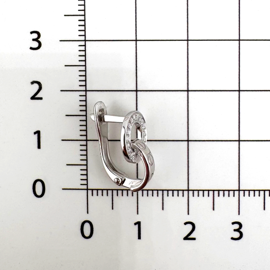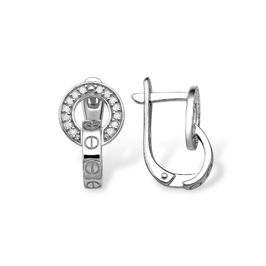 Дизайн: лаконичный и стильный — сочетание круглого ободка, инкрустированного фианитами, и декоративной планки с гравировкой. Геометрия линий и симметрия делают серьги универсальными.