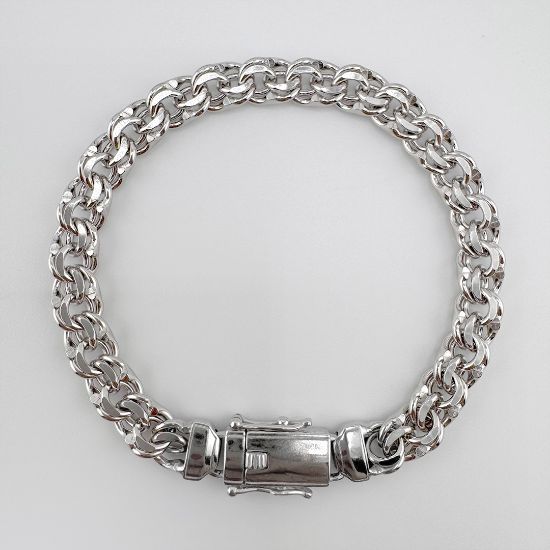 Плетение «Бисмарк»: прочная и выразительная структура звеньев создаёт эффектный объём. Такое плетение не только эстетично, но и практично — браслет устойчив к деформациям.