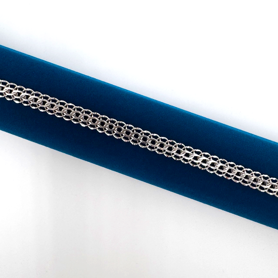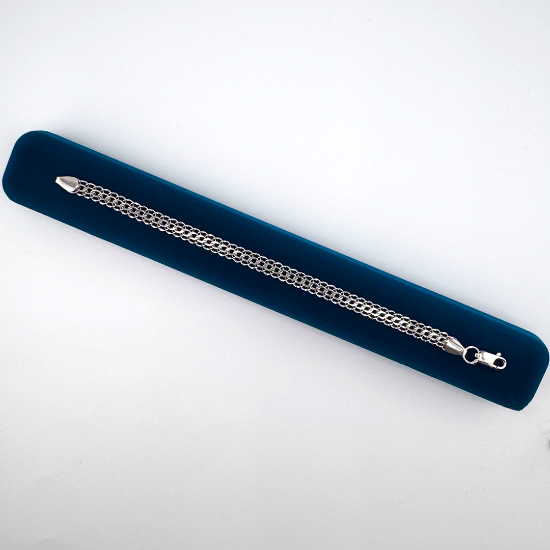 Браслет выполнен из серебра 925 пробы. Плетение «Питон» представляет собой современную модификацию классического плетения «Бисмарк».
