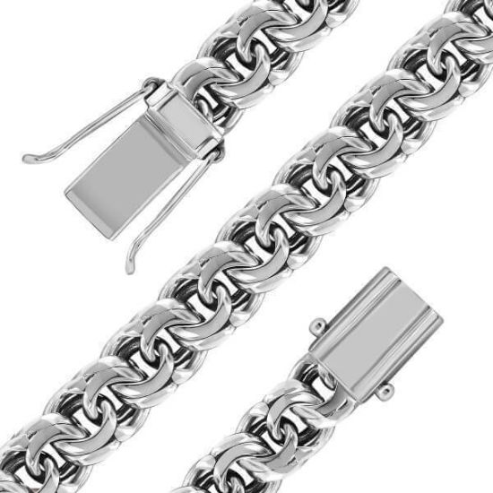 Плетение: «Бисмарк» — один из самых прочных и популярных видов плетения. Переплетённые звенья создают объёмный, выразительный узор, который выглядит массивно, но не утяжеляет образ.