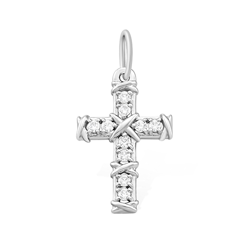 Дизайн: классический крест с центральным геометрическим элементом — ромбом, в котором инкрустирован фианит.