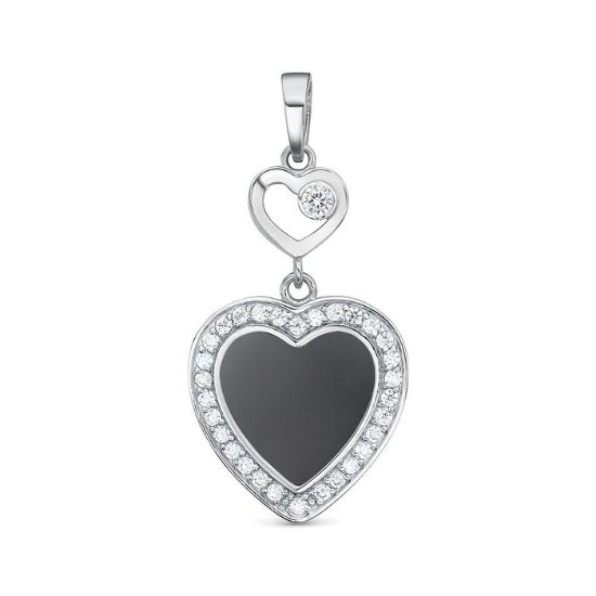 чёрная вставка в форме сердца придаёт украшению глубину и выразительность, выгодно контрастируя с сиянием фианитов.
